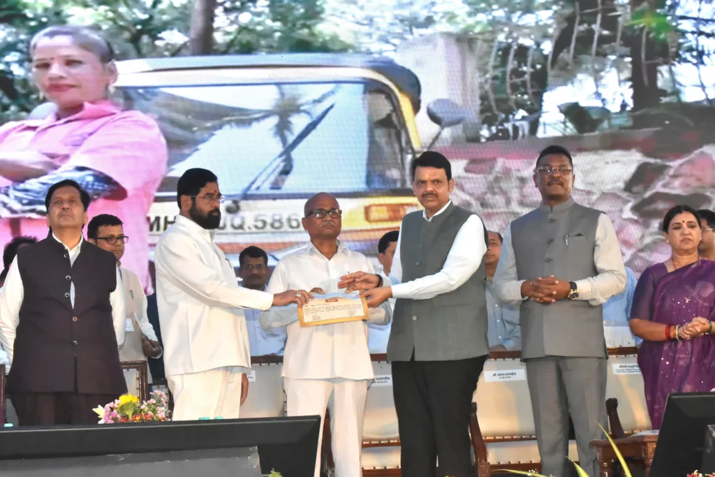 यावेळी मुख्यमंत्री महोदयांच्या हस्ते स्वर्गीय अनंत दिघे साहेब रिक्षा व टॅक्सी चालक-मालक महामंडळाच्या माध्यमातून ६५ वर्षावरील १) श्री . बाबासाहेब कदम,२) अनंत कदम,३)लक्ष्मण गोळे,४) अरुण शिनलकर व ५) पुरुषोत्तम सहस्रबुद्धे या रिक्षा व टॅक्स चालकांचा रुपये १० हजार सन्मान निधी व प्रशस्तीपत्र देऊन सत्कार करण्यात आला. तसेच परिवहन विभागामार्फत नागरिकांसाठी दिला जाणाऱ्या फेसलेस सेवेचे लोकार्पण मुख्यमंत्र्यांच्या हस्ते यावेळी करण्यात आले.