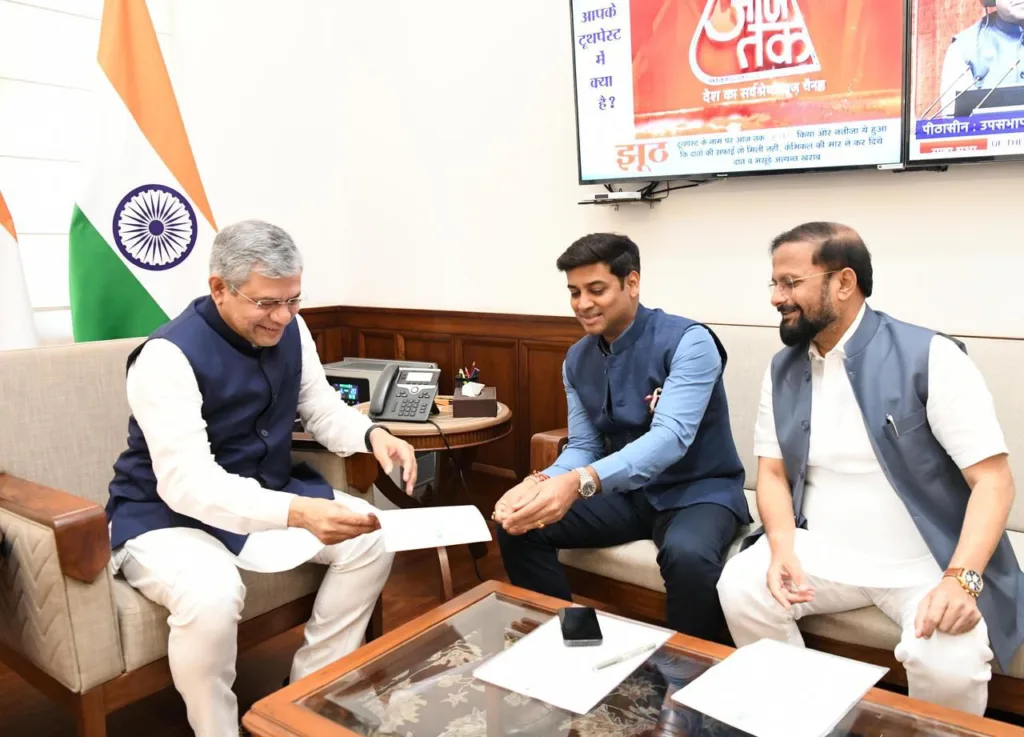 खासदार डॉ. श्रीकांत शिंदे आणि ठाणे लोकसभेचे खासदार नरेश म्हस्के यांनी लोकसभेत रेल्वे मंत्रालयाशी संबंधित अनुदानित मागण्यांवर चर्चा करतांना ठाणे, कल्याण, भिवंडी, पालघर लोकसभा मतदारसंघातील रेल्वे प्रवाशांच्या अडचणी आणि त्याचबरोबर नवीन गाड्या सुरू करण्यासंदर्भात विविध मागण्या केल्या होत्या. आज केंद्रीय रेल्वे मंत्री अश्विनी वैष्णव यांची प्रत्यक्ष भेट घेत आपल्या मागण्यांचे सविस्तर निवेदन दिले.