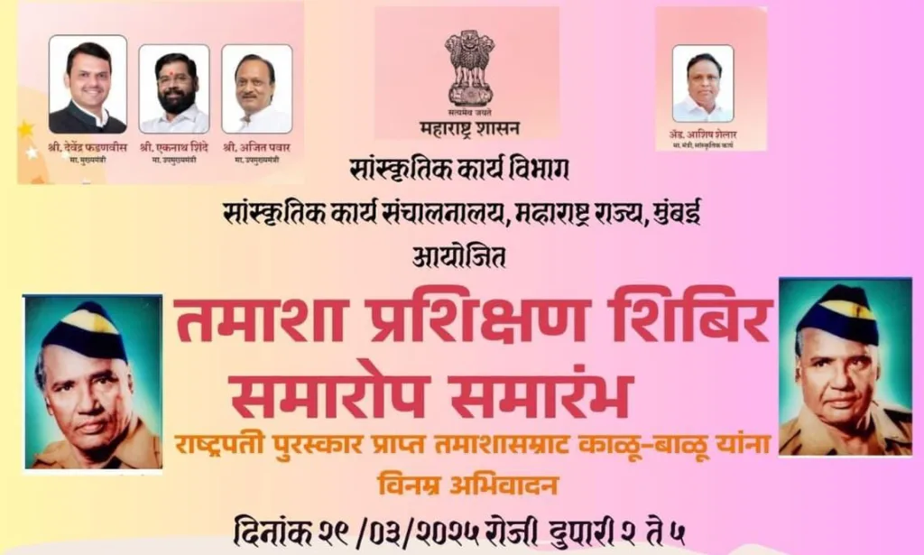 सांस्कृतिक कार्य विभाग, आणि सांस्कृतिक कार्य संचालनालयाच्या वतीने तसेच मुंबई विद्यापीठाच्या लोककला अकादमीच्या सहकार्याने गेली दहा दिवसाचे तमाशा प्रशिक्षण शिबीर लोककला अकादमी (मुंबई विद्यापीठ) येथे सुरू होते.या शिबिरामध्ये तमाशा परंपरेनुसार शास्त्रशुद्ध पद्धतीने गण, गौळण, बातवणी, रंगबाजी असे तमाशा कलेचे विविध कला प्रकार या क्षेत्रातील अभ्यासकांनी या दरम्यान शिकविले.त्यानुसार तमाशा शिबिरात सहभागी झालेल्या विदयार्थ्यांनी शेवटच्या दिवशी एक पारंपारिक तमाशा सादर करायचा असतो. त्यामुळे शनिवारी (ता. 29मार्च) पारंपारिक तमाशा कला रसिकांना विनामूल्य बघायला मिळणार आहेत.