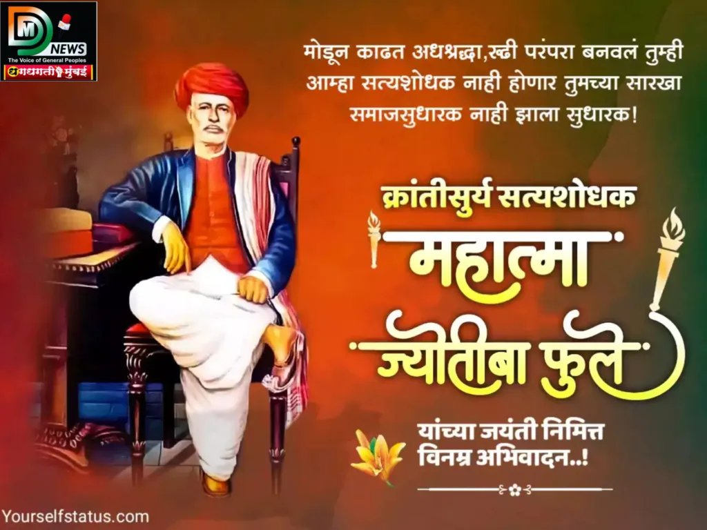 भारताचे थोर सुपुत्र, विचारवंत, समाजसुधारक, लेखक महात्मा जोतीराव फुले यांची जयंती. महात्मा जोतीराव फुले यांचा जन्म ११ एप्रिल १८२७ रोजी झाला. जोतीरावांच्या वडिलांचे नाव गोविंदराव तर आईचे नाव चिमणाबाई असे होते. सातारा जिल्ह्यातील कटगुण हे त्यांचे मूळ गाव. त्यांचे आडनाव गोऱ्हे असे होते पण त्यांच्या वडिलांचा फुले विक्रीचा व्यवसाय होता त्यामुळे ते फुले म्हणूनच ते ओळखले जाऊ लागले पुढे फुले हेच आडनाव रूढ झाले. काही दिवसांनी कटगुणहुन त्यांचे कुटुंबीय पुरंदर तालुक्यातील खानवडी येथे आले. खानवडी येथे त्यांचे घर असून त्यांच्या नावे सात बाराचा उतारा देखील आहे. प्राथमिक शिक्षण पूर्ण झाल्यानंतर त्यांनी भाजी विक्रीचा व्यवसाय केला. जोतीराव फुले यांना लहानपणापासून शिक्षणाची आवड होती. १८४२ साली त्यांनी पुण्याच्या स्कॉटिश मिशन हायस्कूलमध्ये माध्यमिक शिक्षण घेण्यासाठी प्रवेश घेतला. अतिशय तल्लख बुद्धीच्या जोतिरावांनी पाच सहा वर्षातच तो अभ्यासक्रम पूर्ण केला. २३ सप्टेंबर १८७३ रोजी महात्मा फुले यांनी सत्यशोधक समाजाची स्थापना केली. तथाकथित सनातनी उच्चवर्णीय लोकांकडून सर्वसामान्य लोकांवर होणारा अन्याय अत्याचार दूर करणे तसेच गुलामगिरीतून शूद्रातिशूद्र समाजाची मुक्तता करणे व त्यांना त्यांच्या हक्काची जाणीव करुन देणे हे सत्यशोधक समाजाचे ध्येय होते.