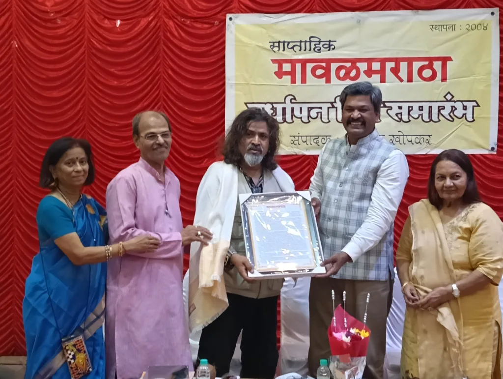 मुबई : “मावळ मराठा” साप्ताहिकाच्या वर्धापनदिनानिमित्त (वर्ष २१वे) आयोजित विशेष कार्यक्रमात सुप्रसिद्ध चित्रकार, साहित्यिक व वृत्तपत्र सजावटीत क्रांती घडवणारे आर्ट डायरेक्टर श्री. प्रदीप म्हापसेकर यांना “मावळ मराठा पुरस्कार” प्रदान करण्यात आला.