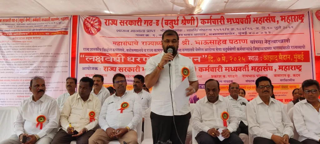 राज्य सरकारी गट-ड (चतुर्थश्रेणी) कर्मचारी मध्यवर्ती महासंघाच्या वतीने राज्यातील कर्मचाऱ्यांच्या मागण्यांसाठी शासनाकडे पाठपुरावा करुनही शासन दखल घेत नसल्याने बुधवारी आझाद मैदानावर आंदोलन करण्यात आले आहे असे अध्यक्ष भाऊसाहेब पठाण, सुरेश आहेरकर,मार्तंड राक्षे, बाबाराम कदम यांनी सांगितले.