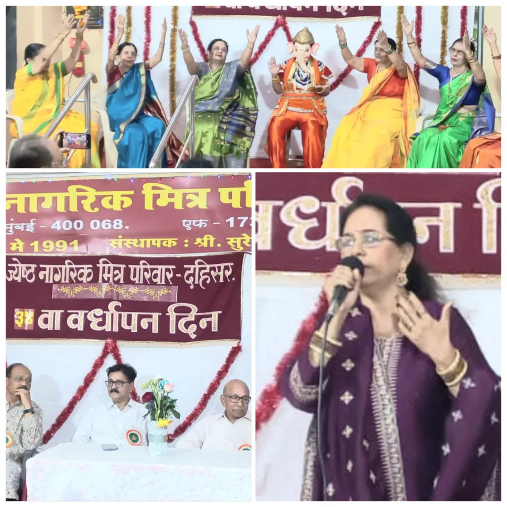 प्रतिनिधी : छत्रपती संभाजी महाराज यांच्या जीवनावरील वाहिनी धर्मरक्षक संभाजी मधील सरनौबत हंबीरराव मोहिते यांचे व्यक्तिमत्त्व साकारणारे अभिनेते अनिल गवस यांच्या नेतृत्वाखालील दहिसरच्या ज्येष्ठ नागरिक परिवाराचा वर्धापन दिन उत्साहात साजरा करण्यात आला. प्रसंगी ज्येष्ठ महिलांनी नृत्य व गाणी सादर केली. वर्धापन दिनानिमित्त विविध स्पर्धांचे आयोजन करण्यात आले होते विजेत्यांना पारितोषिके देण्यात आली. या समारंभास संस्थापक सुरेश ठाकूर व सौ. सीमा ठाकूर प्रमुख पाहुणे म्हणून विद्या मंदीर शाळेचे मुख्याध्यापक सुधीर देसाई, विकासक व सामाजिक कार्यकर्ते संदीप राऊत आणि शिवचरित्राचे गाढे अभ्यासक, शिवभक्त राजू देसाई उपस्थित होते. ज्येष्ठ नागरिक मित्र परिवाराचे अध्यक्ष नाट्यसिने अभिनेते अनिल गवस, उपाध्यक्ष भुषण मुळे, कार्याध्यक्ष किरण देसाई, जनार्दन राणे, खजिनदार गिरिधर घाटे, उर्मिला कालेलकर , प्रदीप परब, पाटील, स्मिता भाटकर, तुषार बांदिवडेकर, महेश बागवे व सभासद मोठ्या संख्येने उपस्थित होते.