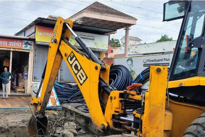 फोटो– बातमी च्या दणक्याने म्हसवड नगरीतील अतिक्रमण काढताना