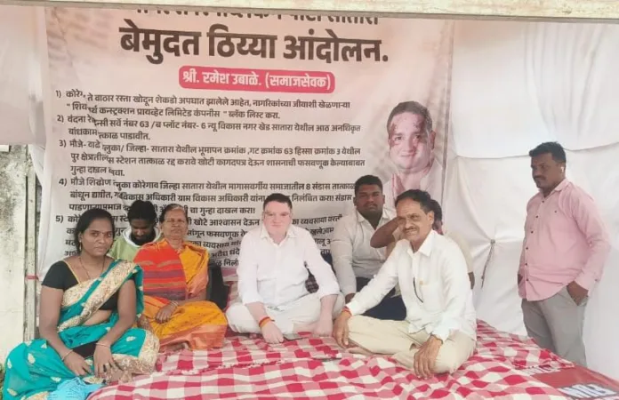 सदरची घटना सातारा जिल्ह्यात प्रथमच घडल्यामुळे जिल्हा प्रशासनाने माणुसकी म्हणून या प्रश्नाकडे लक्ष द्यावं अशी मागणी होऊ लागलेली आहे. यावेळी आंदोलन करते रमेश अनिल उबाळे, महेश रणदिवे, पांडुरंग बल्लाळ, बाबुराव चव्हाण, रियाज मुलानी व सुनिता आवळे आदी मान्यवर उपस्थित होते.