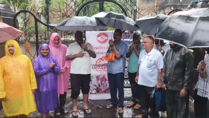 भर पावसात अन्नमित्र तर्फे टाटा केईएम जवळ अन्नदान ; शेकडो जणांनी घेतला लाभ
