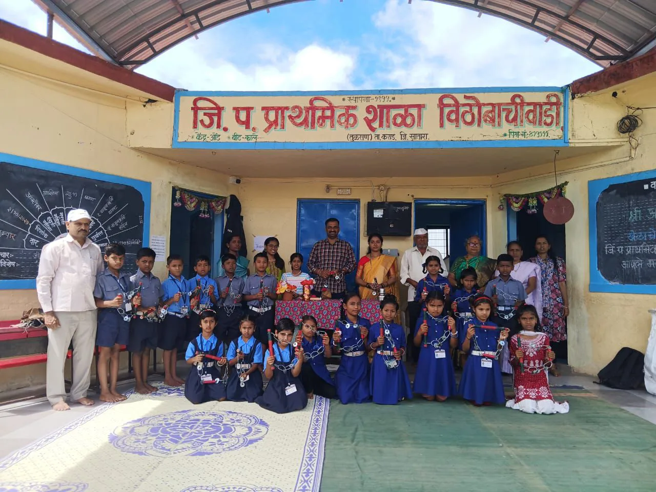 कराड(प्रताप भणगे ) : जिल्हा परिषद शाळा विठोबाचीवाडी (ता.कराड) येथे दसरा निमित्त मा. अरविंद संपत खोत (विठ्ठलवाडी, तुळसण – सध्या मुंबईत नोकरी) यांनी सहपरिवार उपस्थित राहून विद्यार्थ्यांना लेजिम व ढोल संच वाटप केले. तसेच शाळकरी मुलांना खाऊचेही वाटप करण्यात आले.