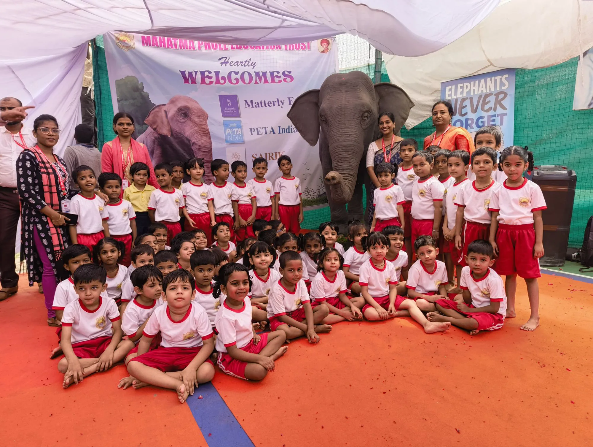 समन्वयक मॅटर्ली फाऊंडेश आणि सैरिक नामक संस्था आणि प्राणी कल्याण संघटना पेटा यांच्या सहकार्याने आज वरील शाळांत “एज्युकेशनल एलिफंट शो” आयोजित केला होता,असे महात्मा फुले एज्युकेशन ट्रस्ट-मुंबईचे अध्यक्ष माजी आमदार बाबुराव माने यांनी सांगितले.