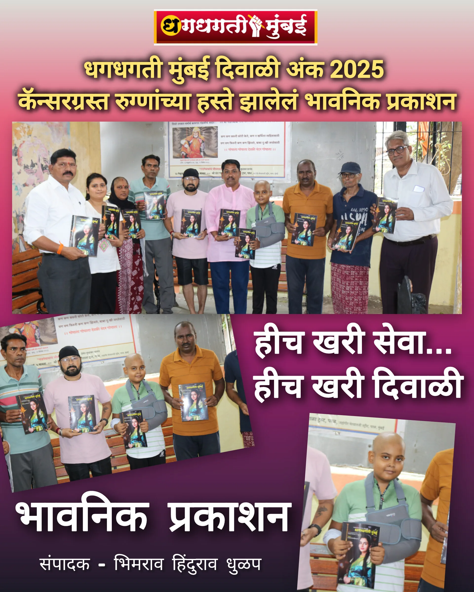 कॅन्सरग्रस्त रुग्णांच्या हस्ते ‘धगधगती मुंबई’ दिवाळी विशेषांकाचे प्रकाशन