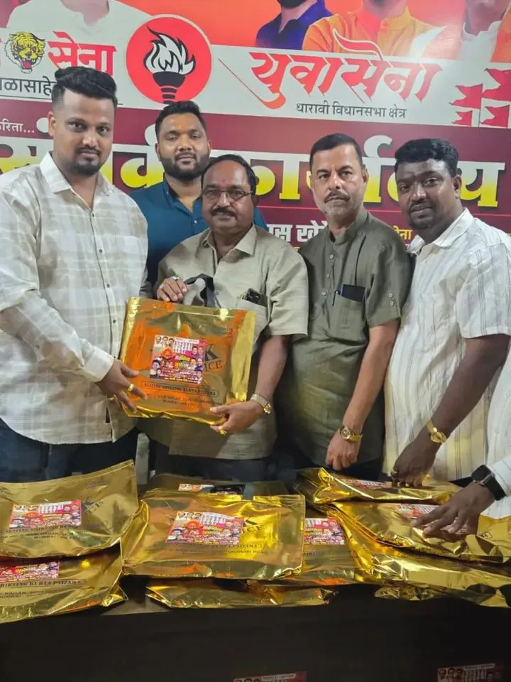 मुंबई : धारावी विभागातील युवा सेना विभाग अधिकारी सनी शिंदे यांच्या पुढाकारातून या वर्षी दिवाळी सण आगळ्या-वेगळ्या पद्धतीने साजरी करण्यात आली. सनी शिंदे यांच्या वतीने धारावीतील सर्व युवा पदाधिकाऱ्यांना संपूर्ण पोशाख संच, तर महिला पदाधिकाऱ्यांना आकर्षक साडी संच वाटप करून सणाचा आनंद द्विगुणित करण्यात आला.