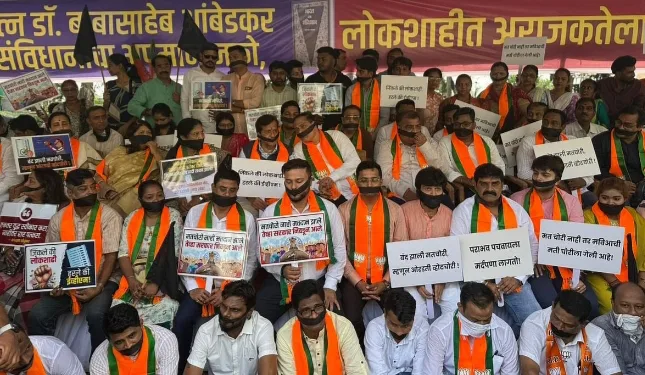भाजपाने या आंदोलनाचं वर्णन “महाविकास आघाडीच्या दुटप्पी राजकारणाविरोधातलं मूक आंदोलन” असं केलं आहे. दुपारी १ वाजता सुरू झालेलं हे आंदोलन शांततेत पार पाडण्यात येत आहे.