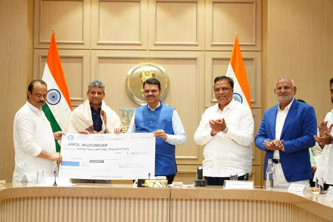 मंत्रालयातील मुख्यमंत्री दालनात मुख्यमंत्री ना.देवेंद्र फडणवीस व उपमुख्यमंत्री अजित पवार यांच्या हस्ते शाल, भेटवस्तू व धनादेश देऊन स्मृति मानधना, जेमिमाह रॉड्रिग्ज,राधा यादव यांच्यासह ऐतिहासिक विश्व विजयाचे शिल्पकार भारतीय संघाचे क्रीडा मार्गदर्शक अमोल मुजुमदार यांचा रोख रु.२२.५० लक्ष व सन्मानचिन्ह देऊन सन्मानित करण्यात आले. याप्रसंगी यावेळी क्रीडा व युवक कल्याण मंत्री ना.अॅड.माणिकरावजी कोकाटे, मंत्री, माहिती व तंत्रज्ञान, सांस्कृतिक कार्य मंत्री .ना.आशिष शेलार मंत्री, क्रीडा विभागाचे प्रधान सचिव संजय खंदारे, आयुक्त श्रीमती शीतल तेली-उगले या उपस्थित होत्या.