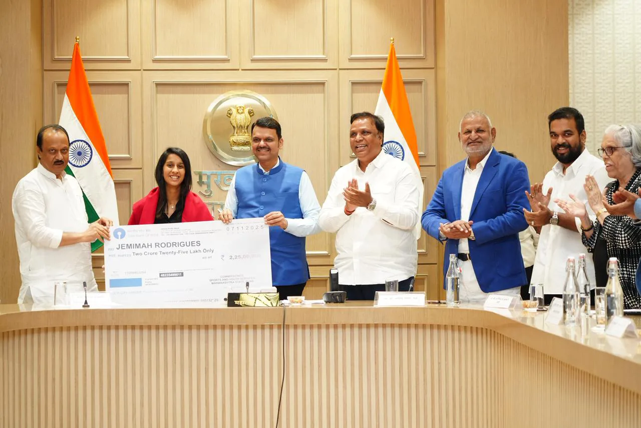 मंत्रालयातील मुख्यमंत्री दालनात मुख्यमंत्री ना.देवेंद्र फडणवीस व उपमुख्यमंत्री अजित पवार यांच्या हस्ते शाल, भेटवस्तू व धनादेश देऊन स्मृति मानधना, जेमिमाह रॉड्रिग्ज,राधा यादव यांच्यासह ऐतिहासिक विश्व विजयाचे शिल्पकार भारतीय संघाचे क्रीडा मार्गदर्शक अमोल मुजुमदार यांचा रोख रु.२२.५० लक्ष व सन्मानचिन्ह देऊन सन्मानित करण्यात आले. याप्रसंगी यावेळी क्रीडा व युवक कल्याण मंत्री ना.अॅड.माणिकरावजी कोकाटे, मंत्री, माहिती व तंत्रज्ञान, सांस्कृतिक कार्य मंत्री .ना.आशिष शेलार मंत्री, क्रीडा विभागाचे प्रधान सचिव संजय खंदारे, आयुक्त श्रीमती शीतल तेली-उगले या उपस्थित होत्या.