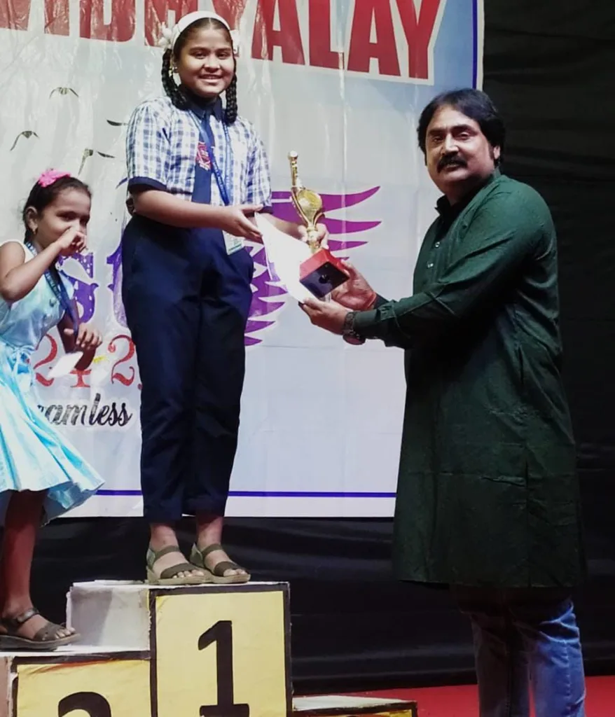 मुंबई (शांताराम गुडेकर /दिपक कारकर ) : भूतलावर प्रत्येक व्यक्तीच्या अंगीकृत कलागुणांना व्यासपीठ मिळालं की, असंख्य सितारे जगासमोर येतात अशी अनेक उदाहरणे नेहमीच प्रत्येयाला येत असतात.राजीव गांधी विद्यालय,नालासोपारा ( प. ) येथे नुकत्याच पार पडलेल्या उडान फेस्टिव्हल मध्ये पालघर जिल्ह्यातील एकूण ३६ शाळांनी सहभाग घेतला होता.या मध्ये विविध प्रकारच्या स्पर्धा आयोजित करण्यात आल्या होत्या.गायन स्पर्धेत आर्या रामचंद्र गांगरकर ( इ.सहावी ) हिने वैयक्तिक तसेच समूह गायन अशा दोन्ही प्रकारांमध्ये प्रथम क्रमांक पटकावला. संगमेश्वर तालुक्यातील मुरडव गावची सुकन्या आर्या गांगरकर ही अभ्यासात अत्यंत हुशार असून शाळेय विविध उपक्रमांत ती कायम सहभागी होत असते.आर्या गांगरकर श्री पाणबुडी देवी कलामंच ( मुंबई ) ह्या मंडळाचे खजिनदार रविंद्र गांगरकर यांची ती भाची आहे.आर्याने गायलेलं गीत अगदी मोहून टाकणारे आहे.संगीत विभागाच्या शिक्षिका तृप्ती तांबे यांचे तिला अनमोल मार्गदर्शन लाभले.या स्पर्धेला प्रमुख पाहुणे म्हणून सिनेअभिनेते उदय नेने,अभिनेत्री गायिका सायली गावंड तसेच हास्यजत्रा फेम निमिष कुळकर्णी युवा नेते सिध्दार्थ ठाकूर आणि इतर मान्यवर उपस्थित होते.आर्याच्या यशाचे अनेक स्तरातून अभिनंदनासह कौतुक होत आहे.