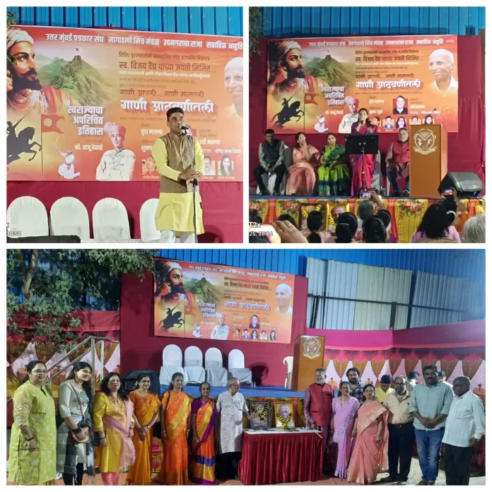 प्रतिनिधी : ज्येष्ठ राजकीय विश्लेषक, समाजसेवक, पत्रकार अशा विविधांगी भूमिकांनी नटलेले व्यक्तिमत्त्व विजय वैद्य यांच्या जयंतीनिमित्त त्यांची कर्मभूमी म्हणून ओळखण्यात येणाऱ्या जय महाराष्ट्र नगर, बोरीवली पूर्व येथील वसंत व्याख्यानमालेच्या भव्य व्यासपीठावर ‘गाथा स्वराज्याची आणि गौरव विजय वैद्य यांच्या कार्यकर्तृत्वाचा’ या कार्यक्रमाच्या माध्यमातून सर्वस्तरीय घटकांनी आवर्जून उपस्थित राहून विनम्र अभिवादन केले. ख्यातनाम लेखक आणि संगीत संयोजक रवि मल्ल्या यांनी नंदकुमार मोरे, वसंत सावंत, राजा खोपकर, राजू देसाई, हेमंत पाटकर, सुभाष देसाई, सचिन वगळ, विजय मडव, मागाठाणे मित्र मंडळ आणि उपनगरचा राजाचे सर्व पदाधिकारी, दादासाहेब शिंदे, वसंत तांबे, हंबीरराव यांची भूमिका साकार करणारे अभिनेते अनिल गवस, आयर्लंडचे पंतप्रधान लिओ वराडकर यांचे बंधू शिरीष वराडकर, अवयवदान चळवळीचे कार्यकर्ते प्रवीण वराडकर, मिलिंद कोळवणकर, आदींच्या उपस्थितीत सरस्वती देवी आणि विजय वैद्य यांच्या प्रतिमेस पुष्पहार अर्पण करून दीप प्रज्वलन केल्यानंतर वायंगणकर साई स्पोर्ट्सच्या बालगोपाळांनी सरस्वती वंदना सादर केली. प्रा. सौ. नयना रेगे यांनी आपल्या खुमासदार शैलीत विजय वैद्य यांचा प्रदीर्घ जीवनपट उलगडून दाखविला. भक्ती सावंत यांनी तयार केलेली विजय वैद्य आणि राजू देसाई यांच्या निवडक छायाचित्रांची सुंदर अशी चित्रफीत सादर केली. संगीत संयोजक रवि मल्ल्या यांनी त्यांच्या वृंदा मल्ल्या, संगीता मिरकर, उमेश लाड, रश्मी मुळे, भूषण मुळे, राजन पट्टण, मंजिरी आजरेकर या कलाकारांच्या वाद्यवृंदासह सादर केलेली आठवणीतली गाणी, शिवचरित्राचे गाढे अभ्यासक शिवभक्त आणि रायगड या छत्रपती शिवाजी महाराज यांच्या राजधानीला पाचशे एक वेळा भेट देऊन घराघरात, मनामनात छत्रपती शिवाजी महाराज यांचा खराखुरा इतिहास पोहोचविणारे राजू देसाई यांचे खड्या आवाजातील स्वराज्याचा अपरिचित इतिहास सादर करुन तमाम उपस्थितांना एकाच जागी खिळवून ठेवले. उत्तर मुंबई पत्रकार संघ, मागाठाणे मित्र मंडळ, उपनगराचा राजा आणि साप्ताहिक आहुति आयोजित या कार्यक्रमात गेली ४२ वर्षे विजय वैद्य यांनी अखंड चालविलेल्या जय महाराष्ट्र नगर वसंत व्याख्यानमालेच्या भव्य आणि आकर्षक व्यासपीठावर कला महर्षी उदय पै यांच्या ॲड आर्टस् ने बनविलेला सप्तरंगी भव्य फलक सर्वांनाच भुरळ पाडत होता. सुमारे तीन दिवसांच्या व्याख्यानमालेचा साडेतीन तासात रसिकांना, हितचिंतकांना सादर करण्यात आलेला भरगच्च नजराणा म्हणजे एक मेजवानीच होती. याद्वारे विजय वैद्य यांचा वावर अद्यापही होत असल्याचे जाणवत होते. विनोद घोसाळकर, मंगलाताई खाडिलकर, विलास पोतनीस, चंद्रशेखर ठाकूर, र