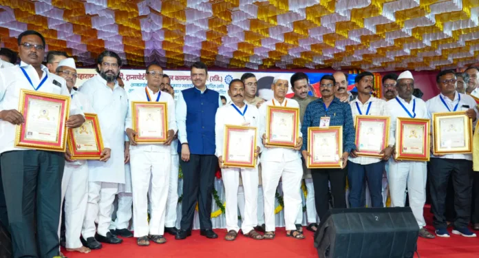 यावेळी माथाडी भूषण मानकरी दिनकर कृष्णा काटकर, विश्वास कृष्णराव पिसाळ, जनाबाई नारायण धुमाळ, वामन सिताराम वैद्य, मधुकर साहेबराव कदम, राजेंद्र खाशाबा लंभाते, प्रदीप गजानन भगत, अनिल सुरेश खताळ, दत्तात्रय ज्ञानदेव कवर, लक्ष्मण दिलीप पाटील, दीपक नारायण आहेर, भिमराव दशरथ चव्हाण, शशिकांत विष्णू यादव, शंकर भिकाजी शिंदे, संतोष गोणबा गाढवे, सुभाष बळवंत यादव, गौतम शनिचर भारती यांना मुख्यमंत्री फडणवीस यांच्या हस्ते गुणवंत कामगार पुरस्कार प्रदान करण्यात आले.
